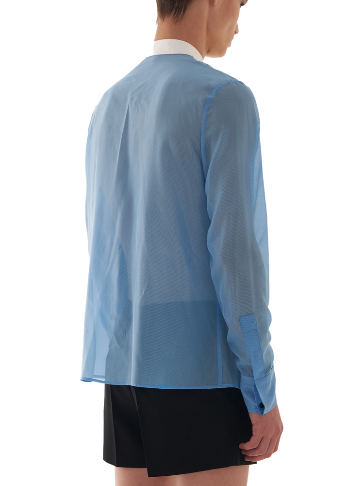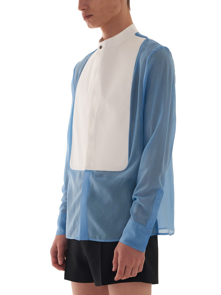 ― Silk shirt emphasizing the contrast between sheer fabric and plastron