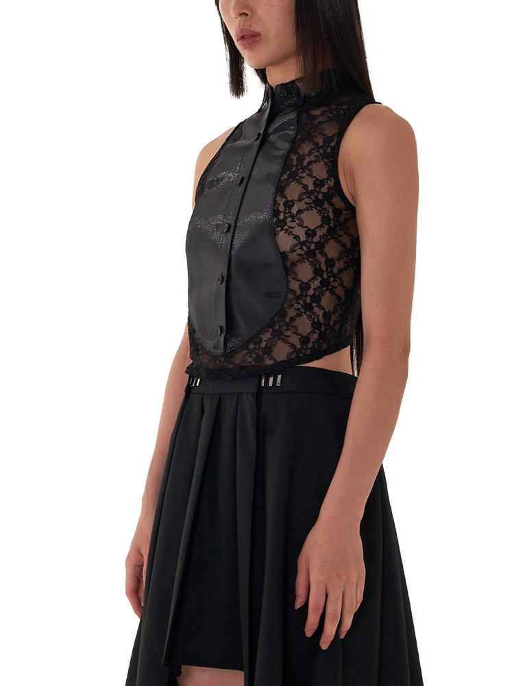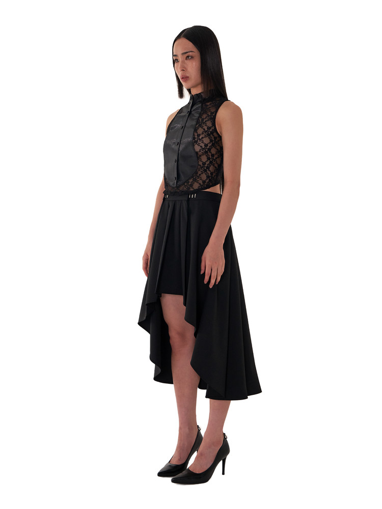 ― Floral lace shirt with plastron accents on the front